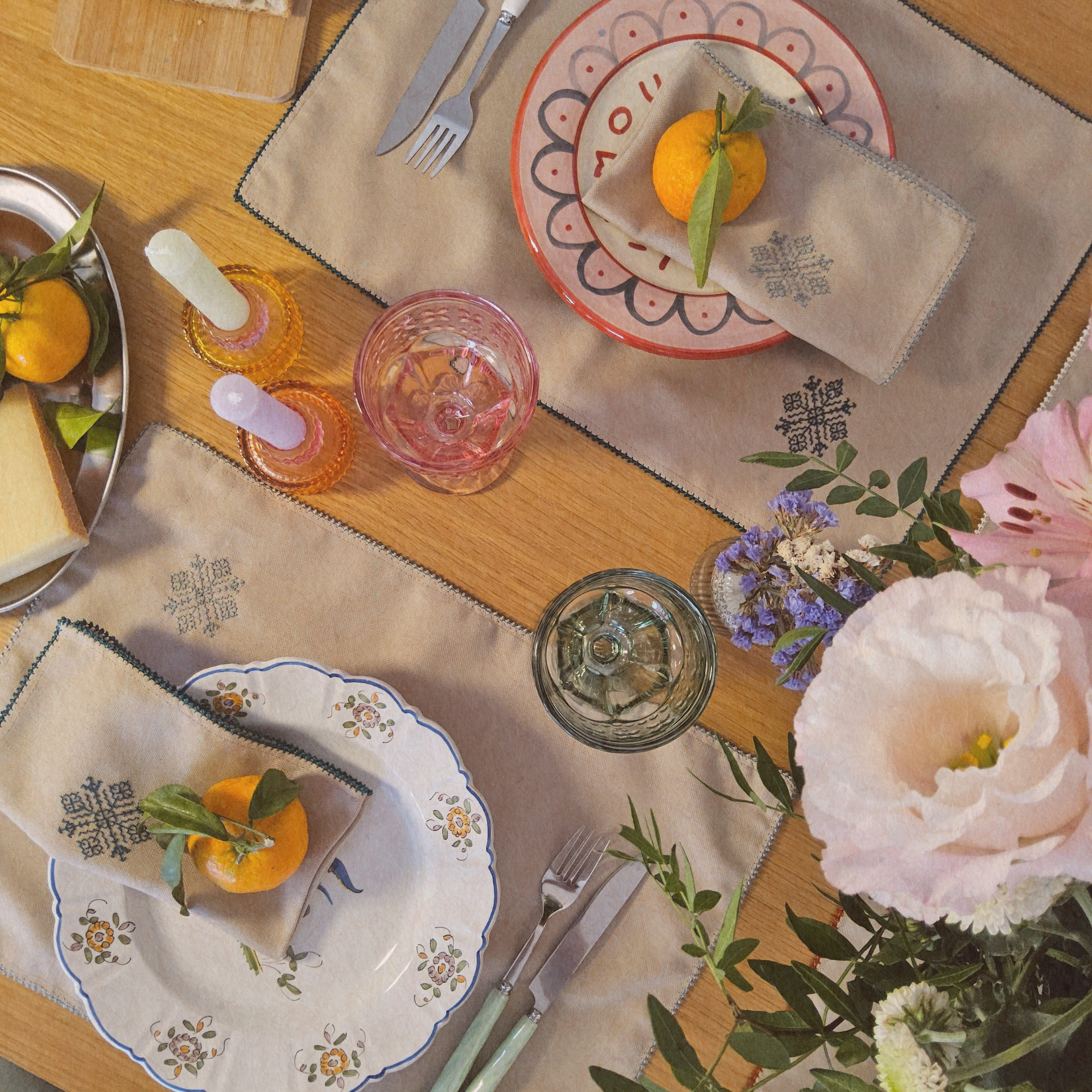 Nous créons du linge de table pensé pour élever les moments simples, pour habiller une table avec des textures qui vivent et respirent.